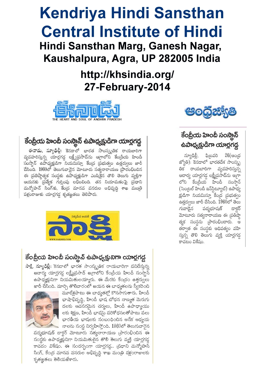 YouTube Video Link : http://youtu.be/0ohVWiJWdwU about the Inaugural Session of the two day 3rd ‘World Telugu Writers’ Conference that coincided with International Mother Tongue Day held on Saturday 21st February 2015 at Vijayawada, Andhra Pradesh, India.