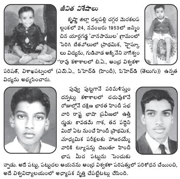 Literature is his first love Born in a lower middle class family in Gudivada he rose to the heights that only a few could dream. After his post-graduation in Hindi he went on to complete his Ph.Ds in Hindi and Telugu from Andhra University. So far Mr. Lakshmi Prasad has written over 32 books in Telugu and Hindi and over 100 articles in various newspapers. In Hindi his books comprise biographies of noted poets like Bhairagi, C.Narayana Reddy and Tripuraneni Ramaswamy Chowdary and translation of works of Bezwada Gopala Reddy and C.Narasimha Rao. In Telugu he penned the biography of Jayaprakash Narayan and translated the biography of Harivanshrai Bachchan and works of many other authors. But the highlight was the Telugu translation of Bisham Sahani's novel 'Tamas' - and he did it in 22 days! A recipient of Padmasri and Central Sahitya Akademi award, Mr. Lakshmi Prasad says that the appreciation he got from people like Amitabh Bachchan and P.V. Narasimha Rao is much more than the awards. "I could see tears welling up the eyes of Mr. Bachchan when I presented him a copy of his father's biography, and Narasimha Rao wrote a preface comprising 29 pages appreciating my Telugu book on Hindi Sahitya Charitra. What else could one ask for?" Into politics He later took active part in JP's movement for purity in public life and was the district unit president of the Chhatra Sangarsh Committee. "Immediately after the Emergency I found myself at the crossroads. I had to decide whether to continue my academic goals or plunge into full-time politics. Being the eldest son of a large middle class family I decided to put politics in the backseat and joined as lecturer in Nandigama. The political phase resurfaced when I came in touch with the Telugu Desam Party founder, N.T. Rama Rao. I became his Hindi instructor, and NTR's eldest son Harikrishna catapulted me to the Rajya Sabha in 1996." It was Hindi that got him a job and, it was Hindi that put him in close contact with NTR and it was again that language that earned him a good name in Parliament. He earned the appreciation of scholarly political leaders like Narashimha Rao, Atal Behari Vajpayee, Karan Singh and L.K. Advani for his command over the language. Parliament tenure On many an occasion, he raised the issues related to Hindustan Shipyard, Alamatti, cotton growers' plight and capital restructuring for Visakhapatnam Steel Plant. He received accolades from all quarters when he brought to light the plight of the family members of Defence personnel, especially the womenfolk who were being harassed by goondas in New Delhi, as their husbands were busy serving on the borders. |