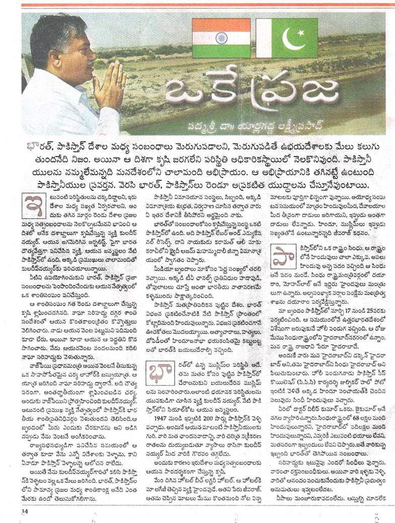 The team is back from Pakistan with a message of love and friendship. It is time that establishments in both India and Pakistan reciprocate the wishes of people of both the countries to address all outstanding issues. In fact, the issues of Siachen and Sir Creek can be resolved quickly as they were very close to signing the agreement when the Composite Dialogue was paused following the attacks on Mumbai. |